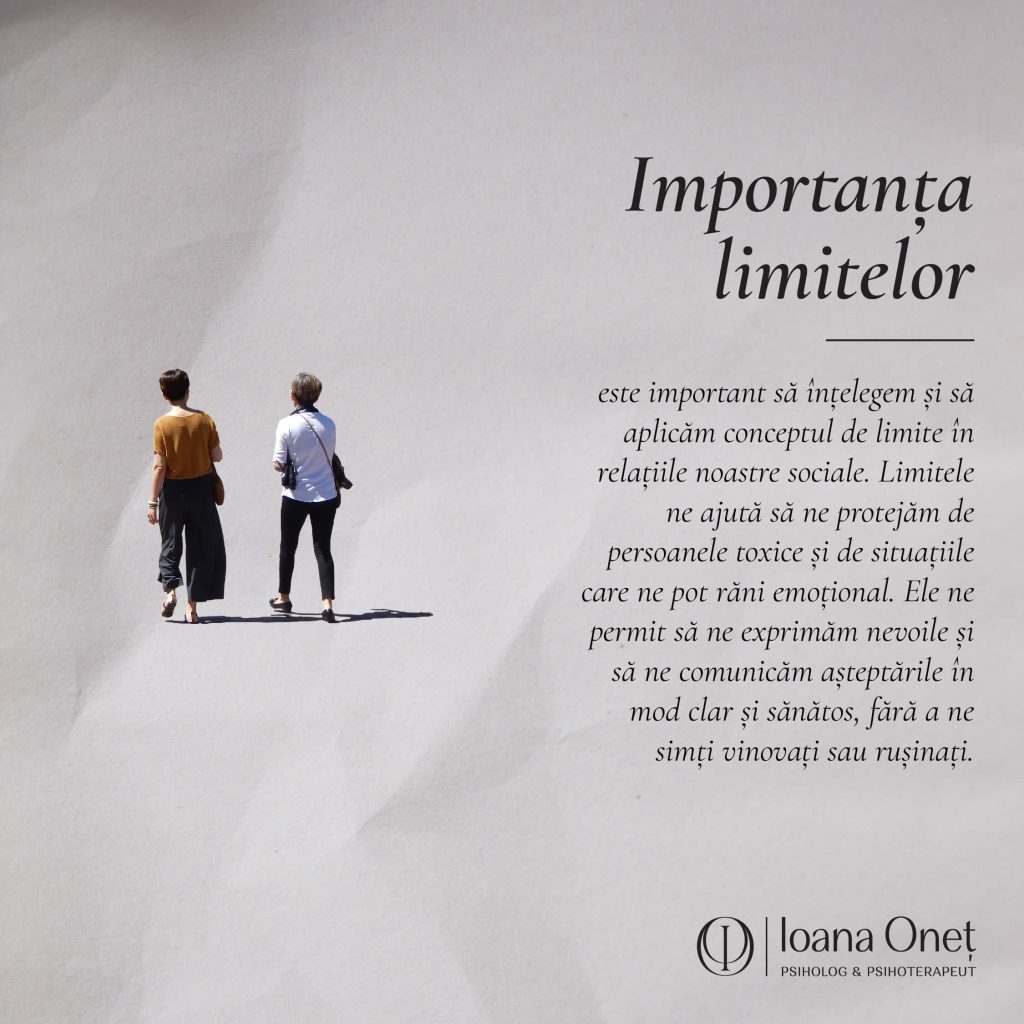 Dacă observi că îți este dificil să spui „nu”, să îți exprimi nevoile sau să-ți protejezi spațiul personal, o întâlnire terapeutică poate fi un prim pas important spre învățarea modului în care îți poți construi limite sănătoase, menținând în același timp relații autentice și respectuoase cu tine și cu cei din jur.