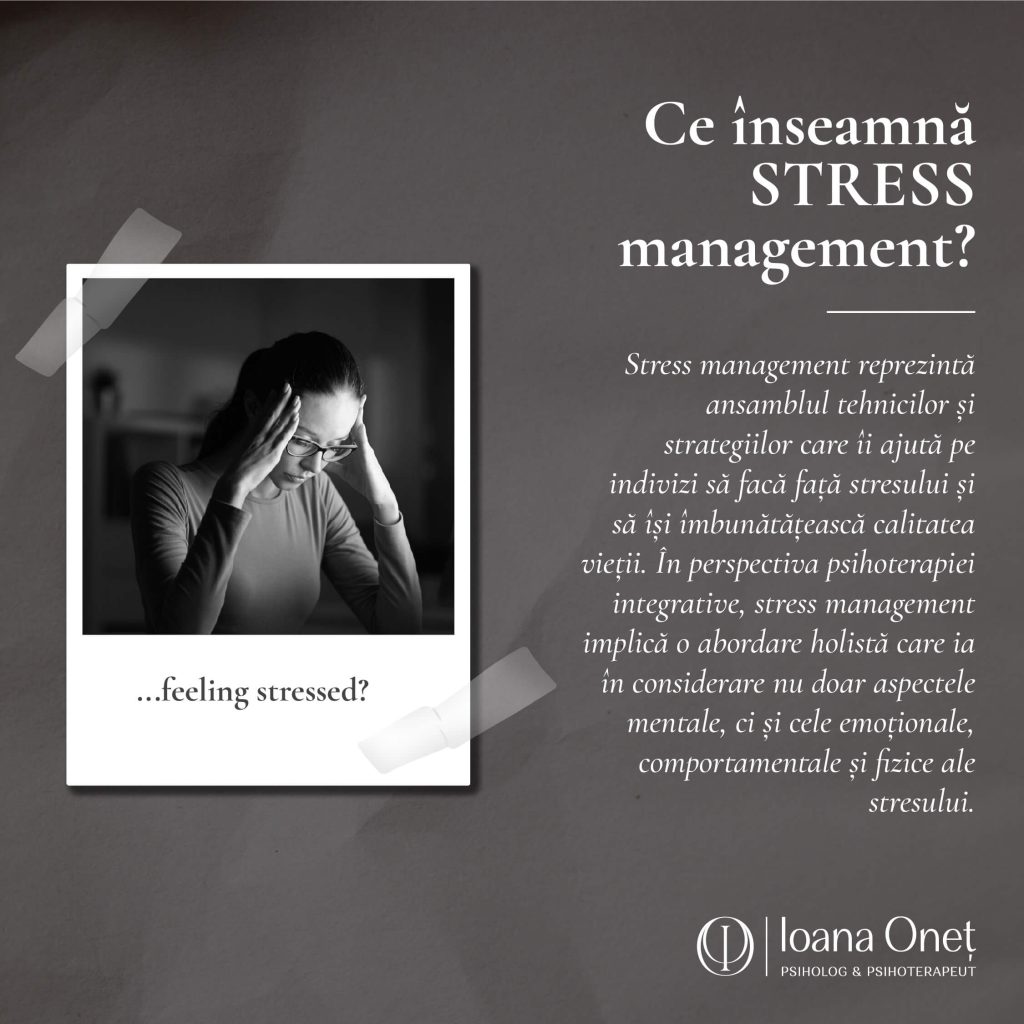 Gestionarea stresului implică atât înțelegerea factorilor care îl generează, cât și adoptarea unor metode eficiente de reducere a impactului său. Strategiile pot include exerciții de respirație conștientă, activitate fizică regulată, organizarea timpului, pauze frecvente și menținerea unei rutine echilibrate. Suportul din partea celor apropiați și accesul la un cadru terapeutic pot contribui semnificativ la procesul de reglare emoțională.